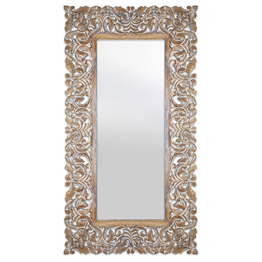 Custom Hand Carved Mirror "Semesta" Natural Wash - 150 x 70 cm