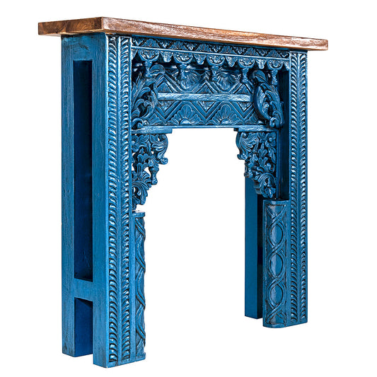 Wooden Carved Console Table "Nia" - Blue & Natural