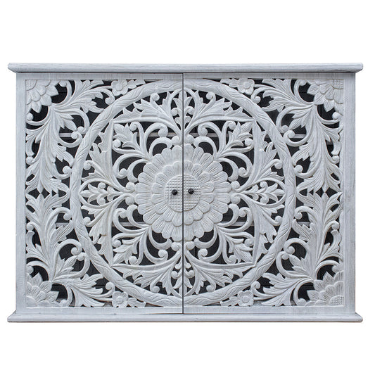 Wooden Carved Cabinet 'Aura' - Natural wash