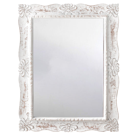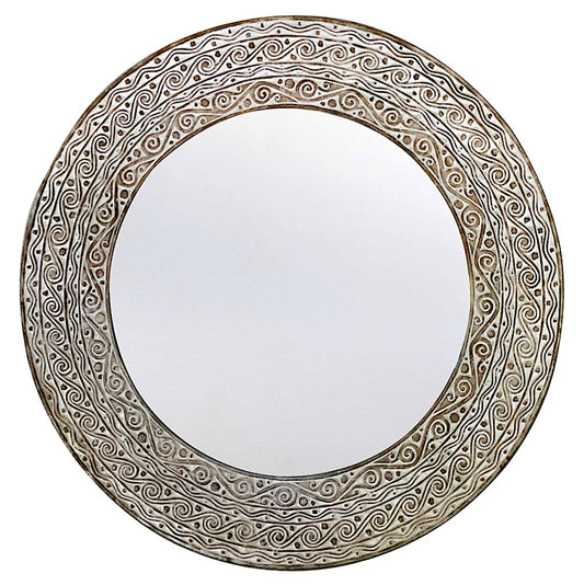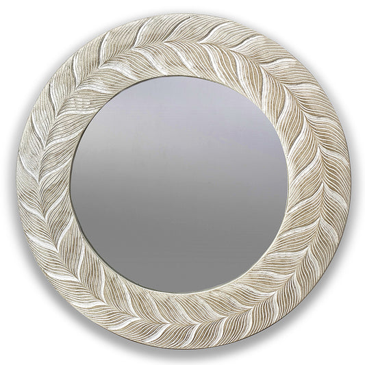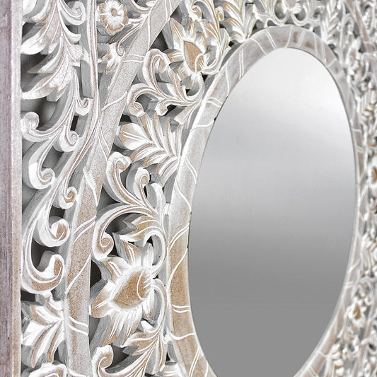 Hand Carved Mirror "Wanasari" White Wash - 70 cm