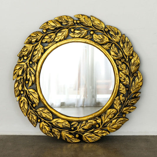 Hand Carved Mirror "Gelora" Gold Wash - 90 cm