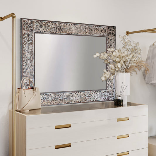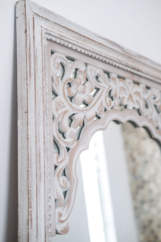 Hand Carved Mirror "Nirmala" - 180 cm - White