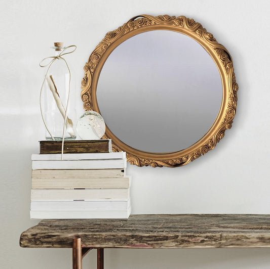 Hand Carved Mirror "Roopa" Gold antic wash - 80 cm