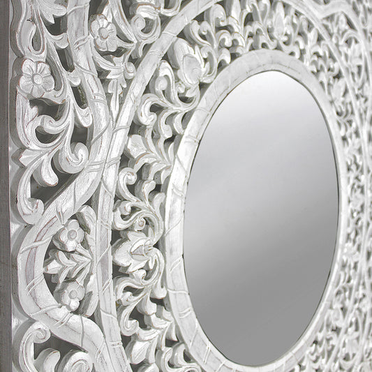 Hand Carved Mirror "Dewata" White Wash - 100 cm