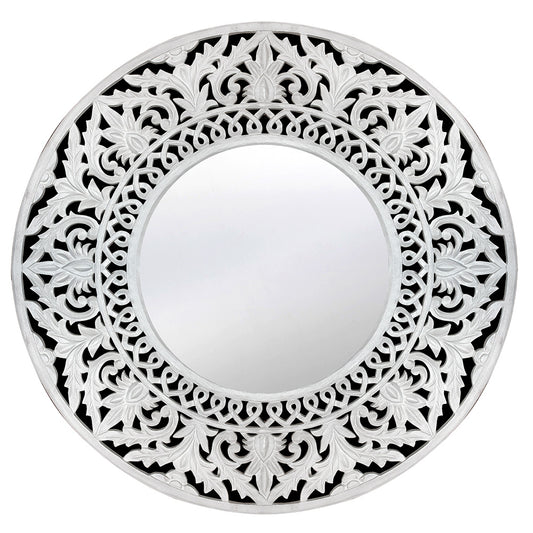 Hand Carved Mirror "Rahajeng" White - 80 cm