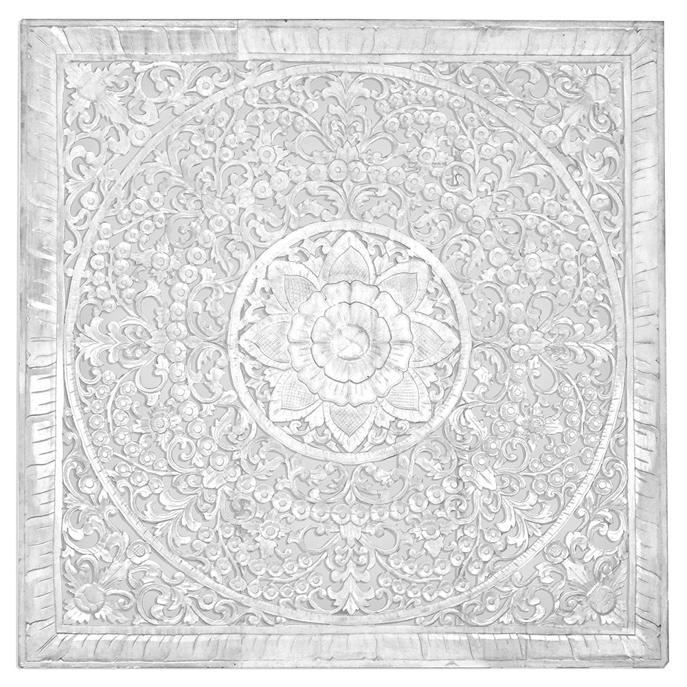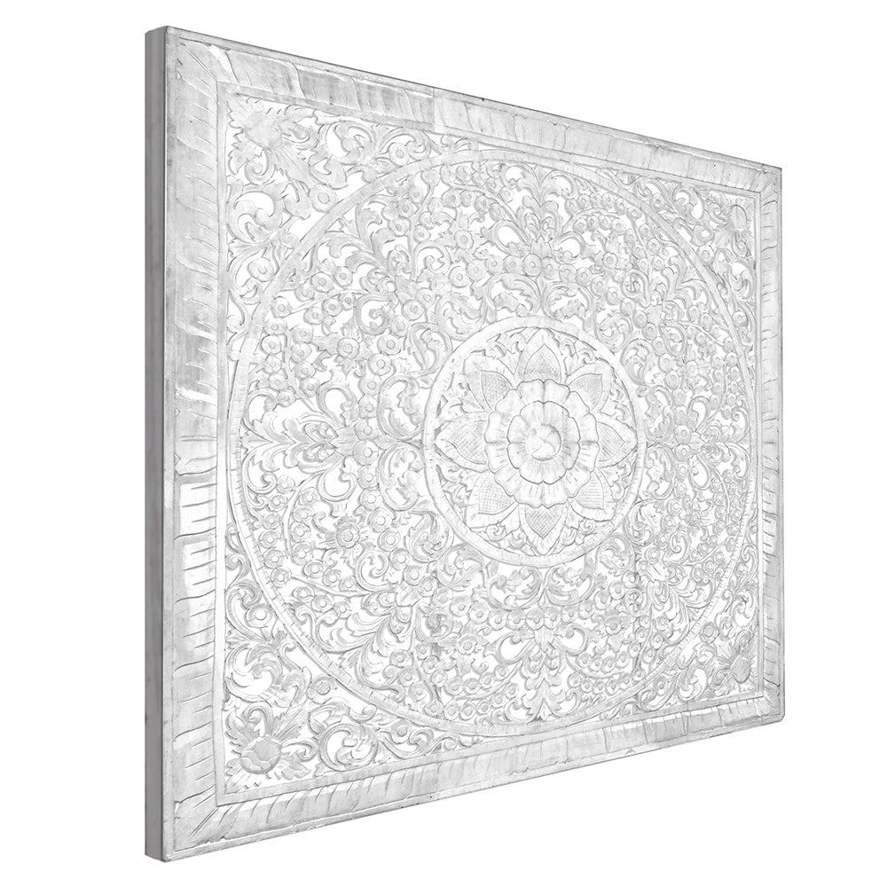Carved Bed Heaboard 'Suksema' - White and Grey