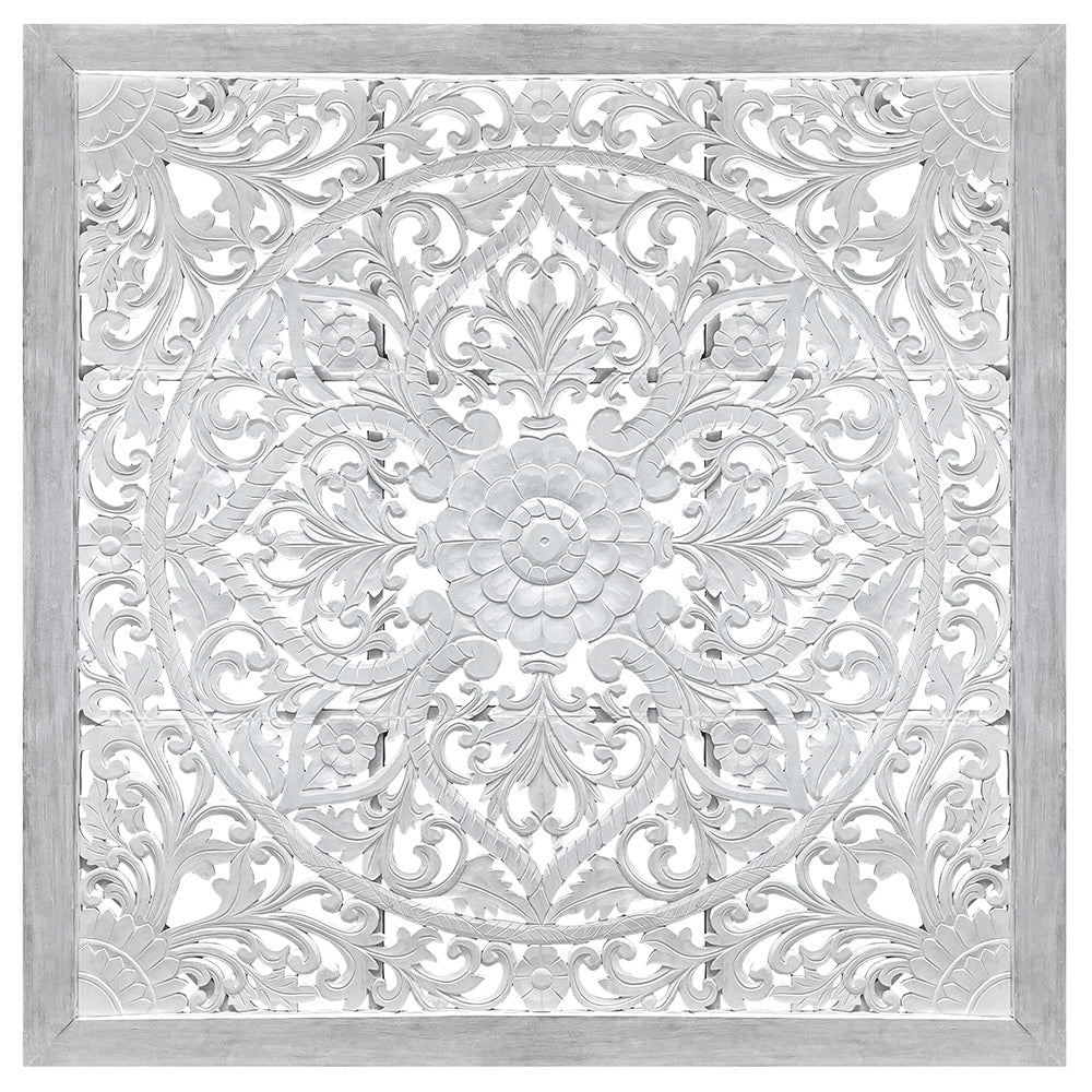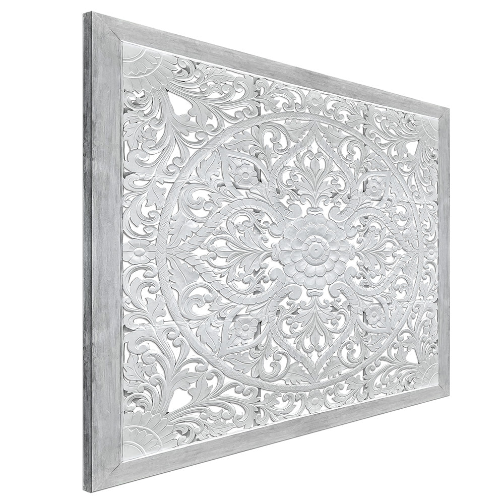 Carved Bed Heaboard 'Suksema' - White and Grey